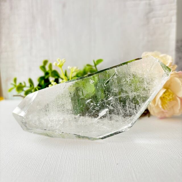 平らな面も大きいのでお体に載せたり、他のクリスタルをのせて浄化したり、いろいろお使いいただけます!