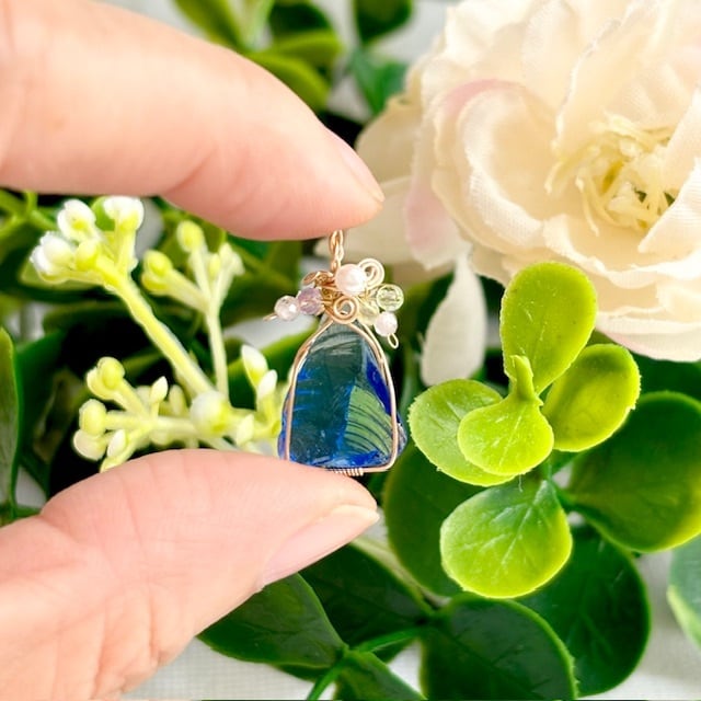 使用クリスタルビーズ:水晶、アクアマリン、ストロベリークォーツなど