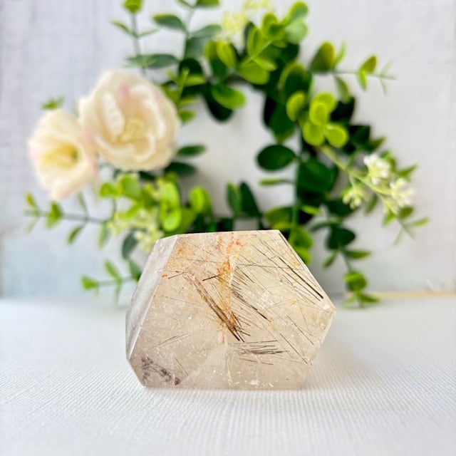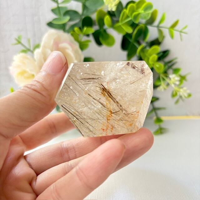 キラキラの虹をたくさん内包しており、ゴールデンヒーラーやゴールデンルチル、シルバールチルも見られる希少な結晶です♡