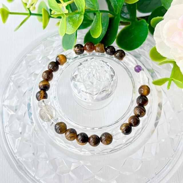 タイガーアイとアメジストは幸運、拡大を司る木星のエネルギー、ローズクォーツは愛と美と調和のエネルギー♡