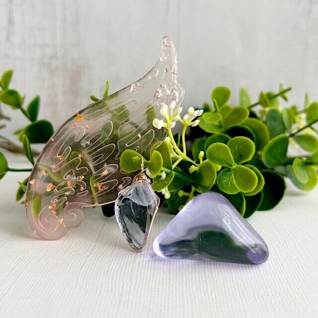 このアンダラクリスタルのタンブルとペンダントはどちらも色が変わります♪