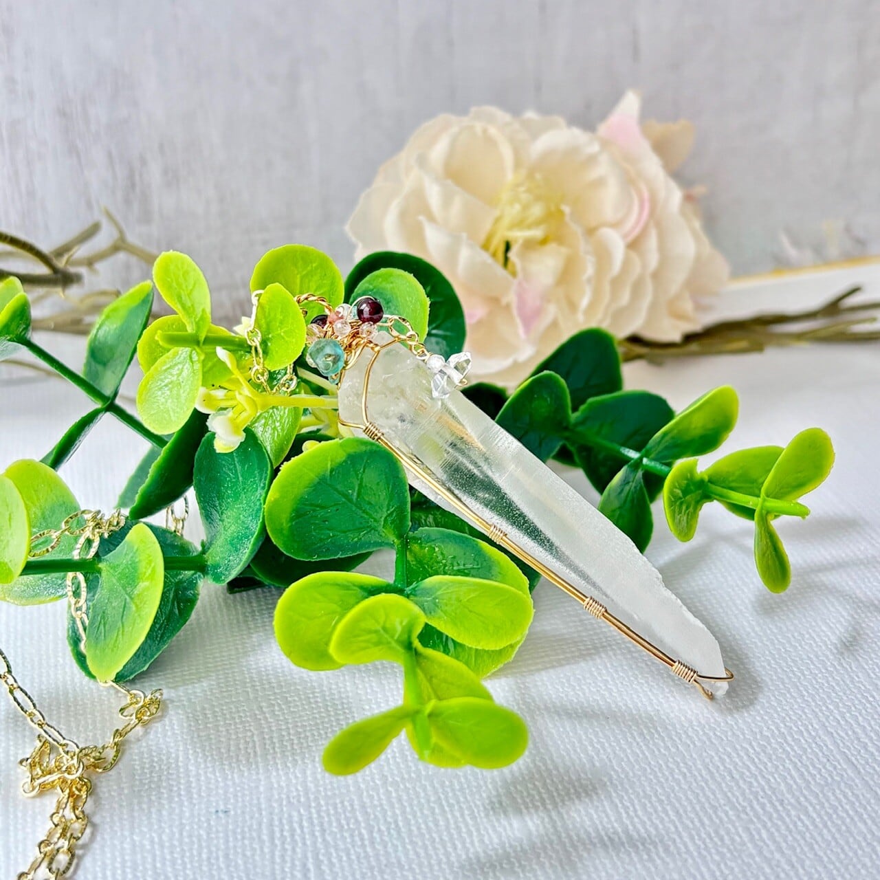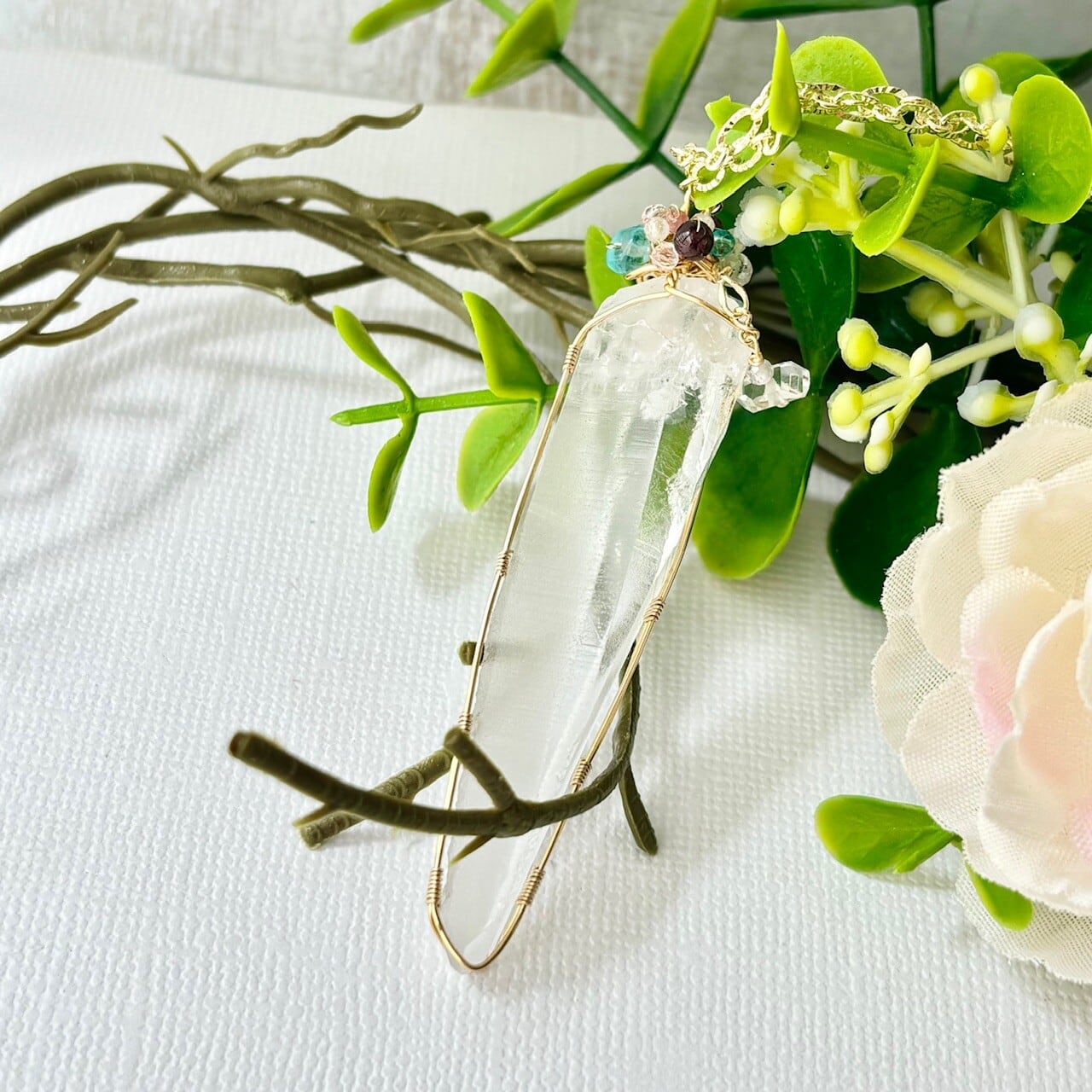 使用ビーズ:ハーキマーダイヤモンド、アパタイト、水晶、ガーネット、ストロベリークォーツなど