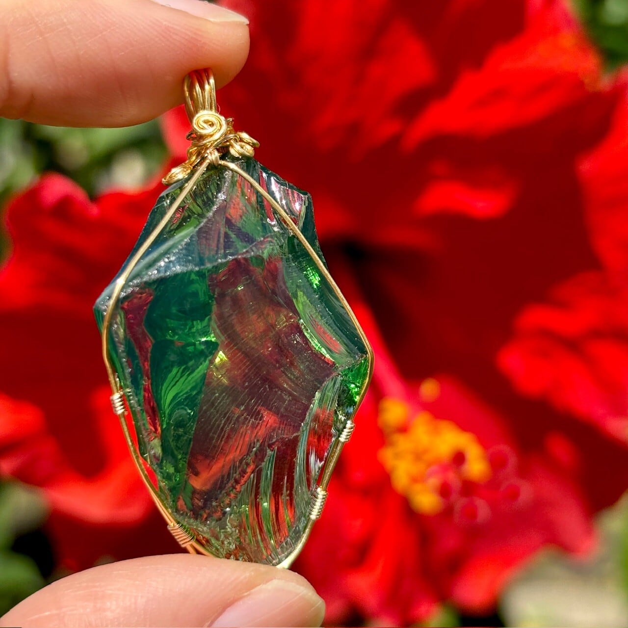 アンダラクリスタルはガラス質でゴールド、シルバー、イリジウム、ロジウム、クロム、プラチナその他ミネラルがふくまれているためいろいろなカラーが存在するようです。