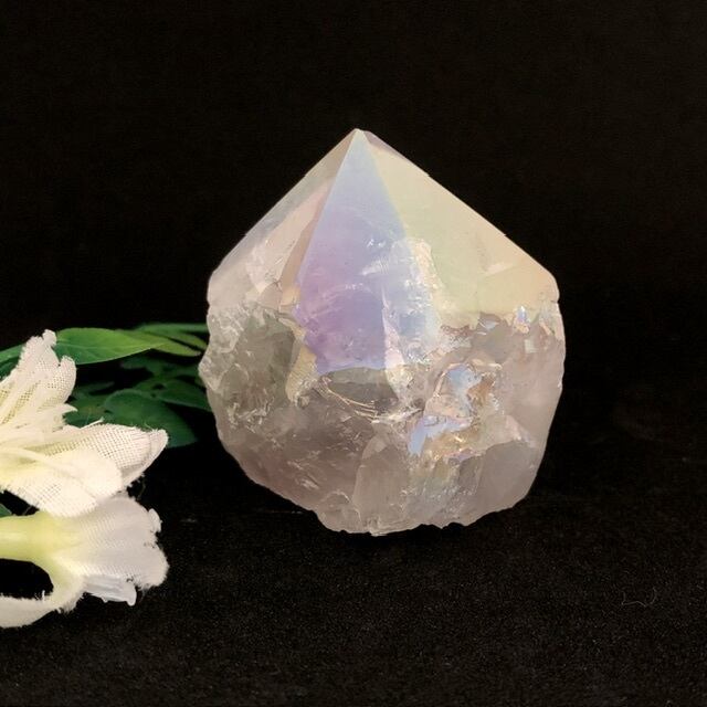 チタンなどの金属成分を熱蒸着で石の表面に付着させオーラのような輝きが出ます。