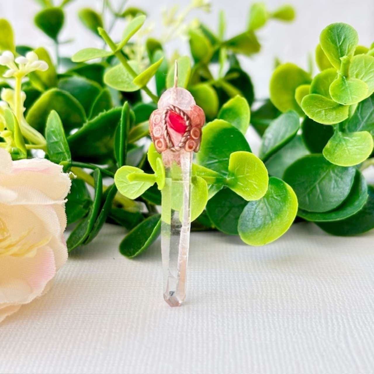 使用クリスタル:レムリアンシード、ローズクォーツ(10㎜)、アンダラクリスタル(赤バイカラー)
