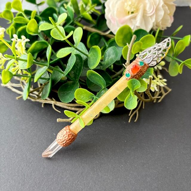 ワンドのポイントにはピンクレムリアンクォーツを使用しています。