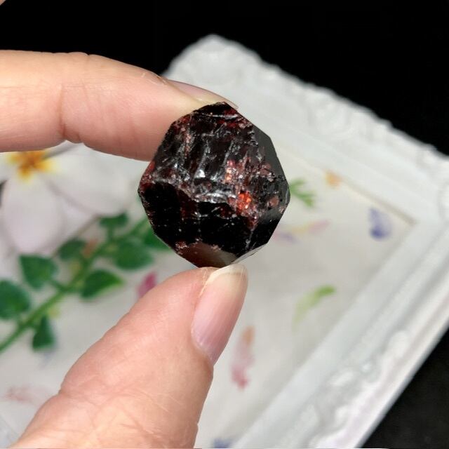 一見、黒っぽい石のように見えますがよく見ると欠けた部分から情熱的な赤のきれいなお色が顔を出しています♡