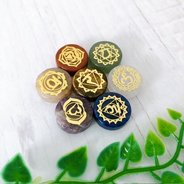 チャクラのシンボル入りの7石のセットです。