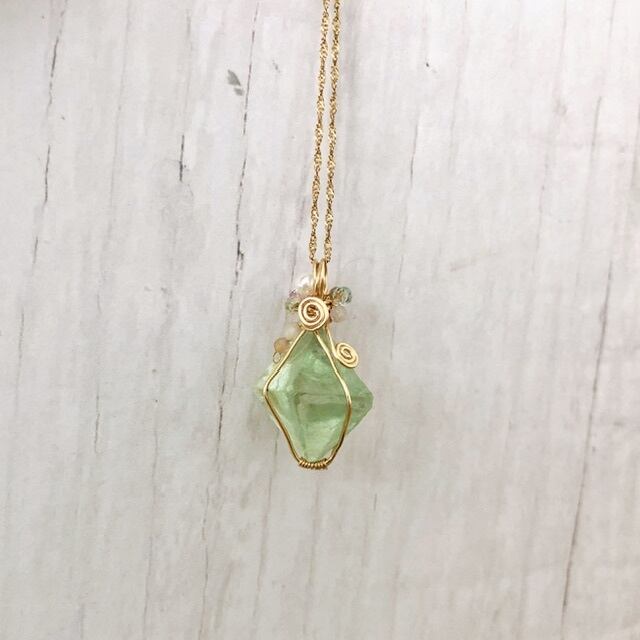 胸元に光るオクタヒドロンのかわいいフローライトが輝きます♡