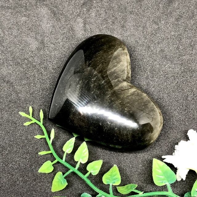 ぷっくりハート形のゴールド×ブラックが上品な美しいオブシディアン。